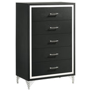 Gleaming hints of gold bring bright warmth and elegance to a five-piece modern bedroom set. Designed to impress, it boasts a wingback bed with beige upholstery and a fluted look that delivers impressive depth and dimension. Its low footboard rail creates an open, airy silhouette, perfect for a compact space. The dresser, chest, and nightstand offer abundant storage, each in a bright white finish with decorative legs and long bar pulls that are sure to catch the eye. The dresser includes a mirror, creating a complete, timeless look and feel in your bedroom.