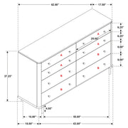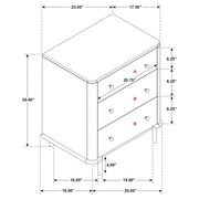 This coastal-inspired bedroom set blends mid-century modern influences with natural textures for a serene retreat. The bed features a cream fabric upholstered headboard and footboard, framed by a wire-brushed wood finish that enhances the beauty of rubberwood, engineered wood, and ash veneer. Aged brass knobs and slender metal legs provide a refined contrast. Designed for modern living, the nightstand includes a built-in dual USB charging port. With its organic textures and functional details, this set offers timeless style and everyday convenience.