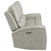 A sanctuary of comfort and thoughtful design, this triple power reclining sofa turns the everyday into something extraordinary. Upholstered in soft leatherette with contrast stitching, its sculpted silhouette offers both structure and serenity. Sink into deep, supportive cushions while power recline, headrest, and lumbar settings respond with effortless grace. A drop-down console reveals hidden storage and ambient LED lighting, while the sleek control panel—complete with dual USB ports—keeps everything within reach. Even in moments of stillness, a rear power connection and emergency battery option ensure comfort never loses power. Key Features: • Triple power reclining sofa with power headrest, power lumbar, and smooth recline functionality • Drop-down center console with lift-top storage and dual LED reading lights • Control panel includes USB-A and USB-C charging ports and a home button for quick reset • Rear AC power socket allows easy wall plug-in and houses 9V battery for emergency power-down • Armrests feature hidden compartments with built-in stainless steel cup holders • Charcoal leatherette upholstery with contrast stitching offers soft texture and modern style