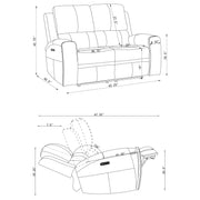 This triple power sofa set is crafted for complete relaxation and everyday luxury. Wrapped in soft leatherette with contrast stitching, each piece offers smooth reclining, adjustable lumbar, and power headrest support at the touch of a button. Hidden cup holders are tucked within each armrest, while a built-in control panel with USB A and USB C charging ports keeps essentials close. A rear-mounted power access panel includes an emergency battery feature for uninterrupted comfort, even during power loss. Key Features: • Triple power sofa set with power headrest, power lumbar, and smooth reclining support • Charcoal leatherette upholstery with contrast stitching adds modern texture and comfort • Hidden stainless steel cup holders in armrests keep beverages within easy reach • Power control panel includes USB A and USB C charging ports and home button • Rear AC power panel supports direct wall plug-in and optional 9V battery backup • Built from leatherette, foam, engineered wood, pine, and metal for lasting durability