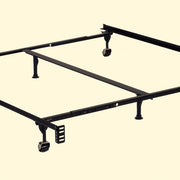 FRAMOS Queen/King Adjustable Frame (4 Legs), 80"L X 70 1/2"W X 7"H, 26lbs. Made with high carbon rail steel, this bed frame has a solid rivet construction for added durability. Fast and easy assembly.