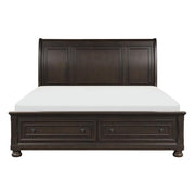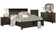 Casual transitional styling lends versatility to the placement of the Begonia Collection in a number of bedroom settings. The grayish brown finish lends distinctly to the execution of different looks from traditional to country casual, with knob hardware punctuating the framed drawer front of the queen bed’s footboard. The storage drawers of the footboard provide a means of additional storage capability. Bun feet support the sleigh bed lending additional decorative touch to the transitional design of the collection.