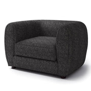 This compact living room ensemble is full of welcomed surprises. The tall arms and low back is an obvious homage to the tuxedo style, but the bulbous shape and smoother lines is a unique twist taking inspiration from the modern era. Underneath the seat cushions are high density foam, making firmer seats than one would expect for the shape that it is in. Finally, soft boucle fabric wraps around the whole piece highlighting a certain air of elegance and quiet class.