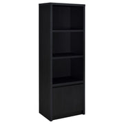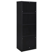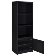 This modern entertainment center combines a sleek TV stand with two matching media towers, offering style and functionality. Finished in a bold black with a scratch-resistant eco-friendly laminate veneer, this unit provides ample storage and display options. The TV stand features cabinets, an open shelf with cable management, and a wide drawer, while each media tower includes open shelves and a bottom cabinet for organized storage. Perfect for creating a cohesive entertainment space in any living room.