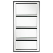 Present decor, bedroom essentials, and more along this modern glam wall mirror. Designed with an elongated, vertical mounting silhouette, this elegant wall mirror offers three narrow shelves to keep anything from perfumes to family photos. Covered entirely in a mirror tile, this wall mirror offers a dark tone edge that offers a defined contrast against the reflective mirror surfaces. A slim beveled edge along the outer mirror frame creates a classical aesthetic and hint of texture. Mount this wall mirror in a compact space to give the illusion of a more spacious interior. Key Features: • Vertical mounted frame offers a stately, space-saving design • Three open shelves invite you to store decor, essentials, and items of importance • Mirror tile and trim encompasses the surface for a highly reflective look • Dark tone edges offer a defined border edge and hint of contrast • Mirror surface deepens and widens a small interior space instantly