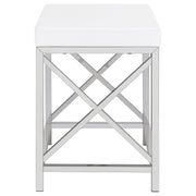 Elevate your morning rituals with a compact, contemporary vanity set, including table, mirror and stool. Perfect for makeup and hair, the vanity shows off a bright white finish with a large drawer for stashing your daily necessities. On top, a lighted mirror adds Hollywood glamour while providing bright illumination so you can see every detail as you get ready for everything from running errands to a girl's night out. The desk is accompanied by a backless stool, providing an easy spot to sit as you prepare for the day. The stool features a base with X-shaped braces to match the desk and includes a white faux leather seat with lovely padding that starts your day on the right foot. Key Features: • Bright white finish with a large drawer for stashing your daily necessities • Lighted mirror adds Hollywood glamour while providing bright illumination • Desk is accompanied by a backless stool with X-shaped braces and a white faux leather seat with lovely padding • Compact and contemporary design perfect for makeup and hair • Easy to assemble and maintain for long-lasting use