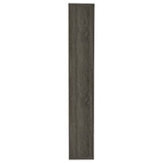 Purposeful imbalance tells a story. Designed with a whimsical profile, this bookcase brightens up a contemporary space. A visually pleasing arrangement of five tiers creates shelf space for books and decor. Finished in a cool weathered grey, it provides versatility and design power. Make this bookcase a focal point in a home office or casual room. Key Features: • Asymmetrical five-tier bookshelf in weathered grey laminate veneer • Offset shelf layout delivers artistic presence and visual rhythm • Crafted from engineered wood and scratch-resistant laminate • Compact vertical profile ideal for smaller home office setups • Versatile neutral finish coordinates with rustic or urban interiors • Includes tip-over restraint for enhanced safety and stability