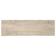 Built from solid mango wood for an eco-friendly touch to your home, this contemporary console table makes a striking statement piece in a space. Designed with a lightly hued, whitewash finish, this console table lends itself nicely to a variety of color palettes and decor styles. Plank side panels with a diamond-motif lattice cut outs offer a charming element to the simple, smooth surfaces of this understated furniture piece. Two drawers offer room for storage and more, while a spacious tabletop keeps lamps, decor and more. Place this lovely console table in a beach cottage foyer or allow it to double as a desk in a global-inspired bedroom. Key Features: • Console table made from eco-friendly solid mango wood • Whitewashed finish highlights the natural grain and light tone • Diamond-pattern cut-outs on side panels add decorative detail • Two drawers provide space for storage or office essentials • Works well in entryways, bedrooms, or as a compact writing desk • Includes MDF components for added structural support