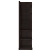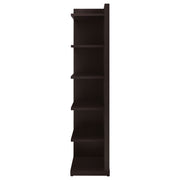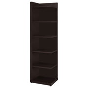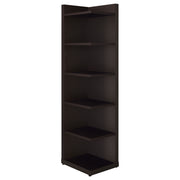 Display your book collection with style and pride. This bookcase features six convenient shelves to show off your personal library. Ideal for smaller spaces, it tucks neatly into a corner to free up precious square footage. A handsome cappuccino finish gives it a classically chic appearance. Crafted from durable MDF, particle board, and engineered veneer, this bookcase is strong, sturdy, and stunning. Key Features: • Corner bookshelf with six display tiers and deep cappuccino finish • Tall vertical frame efficiently utilizes compact corner spaces • Tiers offer open storage for books, plants, or photo displays • Engineered wood with scratch-resistant laminate veneer • Neutral finish suits traditional or transitional interiors • Tip-over restraint included for added security