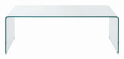 This rectangular coffee table is crafted from tempered bent glass, blending modern elegance with superior durability. Its seamless one-piece design eliminates the need for assembly, offering immediate convenience and use. The smooth curved edges enhance safety and add a touch of sophistication, while the transparent glass creates a spacious and versatile aesthetic. Perfect for contemporary living rooms, this coffee table serves as a sleek, functional centerpiece designed for lasting performance and style.