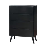 LENNART II Black Chest, 34"W X 17"D X 48"H, 125.4lbs. For a quick modern update to your home, this collection will add that trendy mid-century appeal. Coordinating case goods such as this chest boast slim flared legs and recessed handle drawer pulls. Features: Mid-Century Modern Style Round Tapered Legs Recessed Drawer Handles Solid Wood, Wood Veneer, Others Black