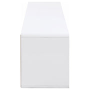 This sleek TV stand brings a crisp, modern look to the living room. Its 71-inch width can accommodate up to a 75-inch screen, creating an ideal media console for contemporary spaces. Crafted from engineered wood with a white high gloss lacquer finish, it offers a refined entertainment center aesthetic. The low-profile frame and two spacious drawers blend minimalism with function, making this a versatile entertainment unit or TV shelf.