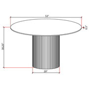 Bring polished sophistication and lasting durability to your kitchen or dining room with a modern dining table. It's crafted from sintered stone, a synthetic surface crafted from minerals exposed to heat to create an authentic look for white marble. Subtle grey veins add depth and detail to the table top. Underneath, a white finished pedestal features a round silhouette and vertical reeded details that add contrasting texture to the smooth table top. This striking dining table is an elegant choice, offering fresh, clean ambiance to your breakfast nook or dining room.