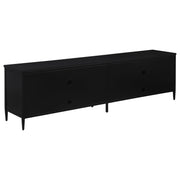 Elevate your entertainment area with this sleek 70-inch TV stand, perfect for accommodating up to a 75-inch TV. The modern design features two door cabinets with stylish radio weave polyethylene (PE) rattan fronts, adding a touch of natural texture to your space. Constructed with a durable metal frame and finished with a sleek powder coating, this stand offers both form and function. Two open-back shelves provide convenient space for devices, ensuring easy cable management and accessibility. With its contemporary appeal and thoughtful design, this TV stand enhances both the style and functionality of your living room. Key Features: • 70-inch TV stand accommodates up to a 75-inch television • Two door cabinets with radio weave PE rattan fronts for added texture • Metal frame construction with a black powder-coated finish for durability • Two tiers of open-back shelving provide easy access to devices • Designed to enhance both the style and functionality of your entertainment space