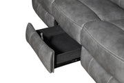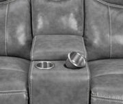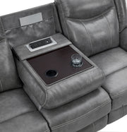 Experience the perfect blend of comfort and functionality with this reclining sofa set, upholstered in smooth grey faux leather for a contemporary appeal. Designed for relaxation, each piece features plush cushioning, padded headrests, and supportive armrests. The collection includes thoughtful upgrades like drop-down tables with cup holders, power outlets, hidden storage, and cool gel memory foam seating. Built with durable metal and plywood framing, this set redefines everyday comfort in modern living spaces._x005F_x000D_ Key Features: • Two-piece reclining sofa set crafted for modern living comfort • Smooth grey faux leather upholstery delivers sleek visual appeal • Sofa includes drop-down table with power outlets and storage • Loveseat console adds dual cup holders and hidden compartments • Cool gel memory foam topper provides lasting seat cushioning • Durable metal and plywood framing ensures long-term stability