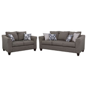 Timeless in design and rich in comfort, this sofa set unites coordinated silhouettes that balance form and function. Each piece features flared arms, foam cushions, and tailored upholstery that enhance a room’s sophistication while maintaining everyday comfort. Decorative accent pillows add texture and contrast, while the scaled design makes this set ideal for both cozy and contemporary living spaces._x005F_x000D_ Key Features: • Two-piece sofa set offers modern silhouettes with flared arm styling • Soft sand upholstery adds warmth and versatility to any living space • High-density foam cushions ensure long-lasting everyday comfort • Accent pillows provide subtle contrast and textural sophistication • Espresso legs deliver grounded balance and timeless visual appeal • Compact scale makes this coordinated set ideal for smaller spaces