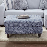 Enjoy a breath of fresh air in your living space with this stylish ottoman. With tapered block legs finished in espresso, the pristine navy base color helps emphasize the stylish patterns on the piece.