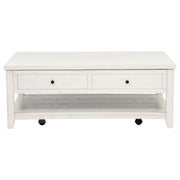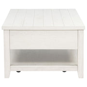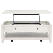 Blending versatility and warmth, this lift-top coffee table brings function and charm to everyday living. Its clean, structured silhouette is elevated by a spacious tabletop that rises for dining or work, while interior storage keeps essentials neatly tucked away. A wide lower shelf adds room for display or baskets, and built-in casters ensure effortless mobility. Crafted from pine, veneer, and engineered wood, it offers grounded style with everyday flexibility. Key Features: • Lift-top coffee table with concealed storage and lower shelf for flexible organization • Distressed brown finish reveals warm wood grain with a classic rustic tone • Top surface lifts for dining or laptop use, then lowers smoothly into place • Built-in casters provide seamless mobility for rearranging or cleaning • Black hardware adds a touch of contrast to the rich wood finish • Crafted from pine, pine veneer, and engineered wood for lasting strength