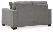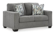 You’re in for a neat treat with this loveseat. Its comfy seats are covered in soft, textural upholstery, and the wide track arms are eager to support your quest for total relaxation. Distressed abstract toss pillows bring a fresh breath of contemporary style while accentuating the loveseat's color.
