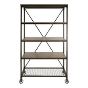 With a look that blends the transitional design element of wood and accenting that lends to a modern traditional aesthetic, the Millwood Collection will help to create the ambiance that you are looking to achieve in your home. The decorative metal base and framing of the 40-inch bookcase combined with the casual contrast of the distressed ash veneer of the shelving creates an industrial look for your home. This bookcase when paired with another bookcase and TV stand, creates a full entertainment wall unit. 26-inch wide bookcase, desk, counter height writing desk and TV stand are also available.