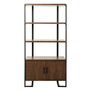 Whether your home leans to transitional or contemporary design, the Sedley Collection will be the perfect fit for your needs. From the distinct walnut veneer pattern to the unique styling of the bookcase, each design component lends to placement in a variety of home settings. The dark metal horizontal hardware and metal support framing complement the finish of the group while providing distinct contrast. Convenience factors include behind door storage and open display shelving. Matching desk, file cabinet, bedroom, dining, home entertainment and occasional sets are available in the Sedley Collection.