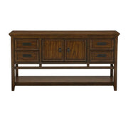 With a subtle lodge look that takes inspiration from design history, the classic styling of the Frazier Park Collection will help you create a dining room environment that is a reflection of your preference for traditional spaces. The brown cherry finish, that highlights the mindy veneer, provides rich character to the wood’s grain. Horizontal fixed knob hardware fronts the functional drawers and doors of the server and china, creating subtle contrast to the collection’s finish.