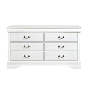 Traditional in design and modest in scale, the elegant Mayville Collection takes its design inspiration from the classic Louis Philippe styling. The Okume veneer of the dresser is paired with a white finish and is accentuated by antique brass tone drop handles.