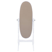 Traditional elegance with a functional twist. This cheval mirror delivers a charming look for a bedroom or dressing space. Full-length mirrored glass with a swivel base offers various viewing perspectives. A selection of lovely finishes blends beautifully in practically every setting. Charming curved legs adds a fresh, stylish look. Key Features: • Traditional oval cheval standing mirror feels like an heirloom piece • Oval wood frame on stand with turned posts • Clear mirror surface • Available in merlot, honey black, and white • Rubberwood construction