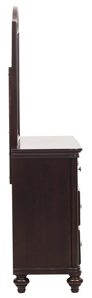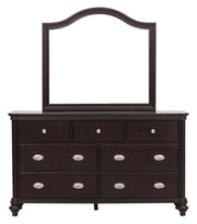 Refined elegance is exemplified in the design of the Marston Collection. Blending classic design elements to create a warm and welcoming bedroom. The classic dark cherry finish and framing of the mirror further lends to the modern traditional look.
