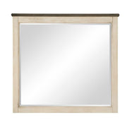 Transitional-rustic styling is expertly achieved in the design of the Weaver Collection. Antique white provides bold contrast to the rosy brown plank-style top rail, with pine solids and oak veneer further lending visual texture to the mirror frame.