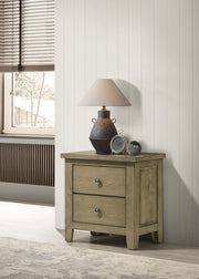 Infuse your bedroom with understated elegance through this two-drawer nightstand in a warm vineyard oak finish. Built from solid rubberwood and engineered wood veneer with embossed oak grain, it delivers timeless style and lasting strength. Antique nickel-finished metal knob offer subtle contrast, while the spacious drawers glide open on heavy-duty metal ball bearing extension slides. Its clean lines and compact size make it a practical and stylish bedside companion for transitional spaces. Key Features: • Nightstand with two drawers for accessible and organized bedside storage • Crafted from rubberwood and engineered wood veneer with oak grain texture • Vineyard oak finish offers a warm, rustic touch to transitional bedrooms • Heavy-duty metal ball bearing extension slides allow drawers to open and close smoothly • Antique nickel metal knobs provide a refined accent against the embossed oak grain veneer • Fully assembled nightstand is ready for placement right out of the box