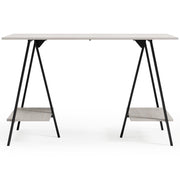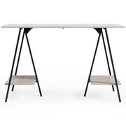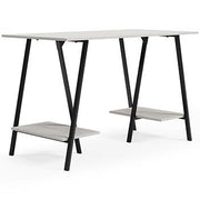 Love an urban farmhouse aesthetic? Make it work to your advantage with this beautifully styled home office desk. A simply striking choice in home office furniture, it has an unmistakable farmhouse feel thanks to a whitewashed finish and gunmetal accents. This minimalist-chic desk with open storage shelves and sawhorse legs gives you plenty of options when working on homework, doing art projects, or just relaxing.