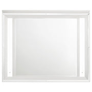 Create a cohesive and luxurious look in your bedroom with this bedroom set. Featuring a bed, nightstand, dresser, mirror, and optional chest, each piece is designed with a modern Italian aesthetic. The white finish, picture framed recessed panels, and embossed herringbone graphic patterns exude sophistication, while the mirror framing, acrylic legs, and polished chrome metal hardware add a touch of opulence. This set offers both style and functionality, making it the perfect choice for your elegant bedroom.