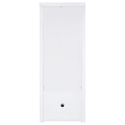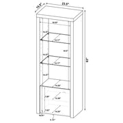 Extend a media console or add easy display space in a den or bedroom with this contemporary tower. Designed to accompany the matching media console, the tower adds a lower cabinet with shelving inside, and a pair of glass display shelves. It’s the perfect solution when both hidden and accessible storage are desired. A crisp white finish adds to the modern look and complements virtually any space. Melamine paper surfaces are designed for durability, perfect for everything from games and media to charming decor. Key Features: • Contemporary tower adds lower cabinet and glass display shelves • Crisp white finish complements any space • Melamine paper surfaces for durability • Perfect for hidden and accessible storage • Ideal for games, media, and decor