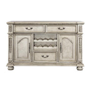 Old-World European styling is captured in the dramatically elegant Catalonia Collection. Traditional design elements reign at every turn – egg and dart molding, acanthus leaf carving, bead molding, gold tipping and extravagant carvings – creating a sophisticated look for your dining room. Each drawer front of the server features dark bronze fixed-drop hardware with decorative flourish that furthers the elegant appointments that embellish this collection. A traditional platinum gold finish is utilized to highlight the oak veneer.