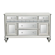 Casting a glamorous reflection of your personal style, the Orsina Collection will dazzle your friends and family as they enter the sophisticated dining space you have created. A sparkling silver finish enhances the fronts of the server, which provides ample drawer and behind door storage allows for the safe keeping of your tabletop accessories.