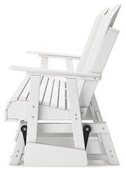 Drift away from everyday worries and into outdoor bliss with this glider loveseat. Dressed in a crisp white, the Adirondack-inspired design has a classic feel. It weathers sunny summer days and cozy winter nights with durable MEGA-TUFF® HDPE material. A drop-down console with integrated cup holders keeps refreshments and snacks within easy reach. With the console snapped into the back, this loveseat has even more room for enjoying lazy days in the shade.