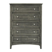 Transitionally styled for your bedroom is the Garcia Collection. Created for versatile placement within a number of environments the chest’s distinct framing along with a cool gray finish, over birch veneer, combine to provide a clean palate for your personal decorative style. Nickel knob hardware provides subtle, yet distinct, contrast to the drawer fronts.