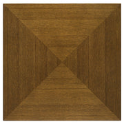 This coffee table set captures the essence of mid-century modern design, combining timeless elegance with bold craftsmanship. The coffee table features a striking walnut brown veneer parquet top, showcasing a geometric wood grain pattern that draws attention. Paired with the end table, which mirrors this aesthetic with its square silhouette and textured top, this set elevates any space with a sophisticated and functional touch. Both pieces share a robust yet refined design that anchors the room in style, making them a perfect combination of form and history.