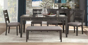 The transitional look of the Baresford Collection makes it the perfect addition to your casual dining room. Ash veneer is highlighted by the gray finish that graces the collection. The wood framed bench has an elongated padded seat that is covered in a neutral toned fabric for complementing contrast.