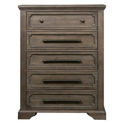 Classic framing provides elegant contrast to the unique rustic look of the Toulon Collection. Distressed dark oak finish provides texture to the acacia veneer of this lovely chest. The French provincial inspired routing lends decorative touch while drawer and door fronts are accented with wide set horizontal metal and wood hardware, and distinct framing.