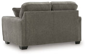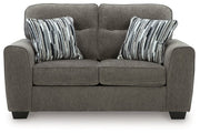 Strike a balance between the indulgent comfort you crave and the contemporary aesthetic you long for. The fabulously soft, mocha-colored upholstery of this loveseat takes neutrals to new heights. Plus there's plenty of room to spread out and relax solo or with your bestie. Geometric-patterned accent pillows perfect the richly on-trend aesthetic.